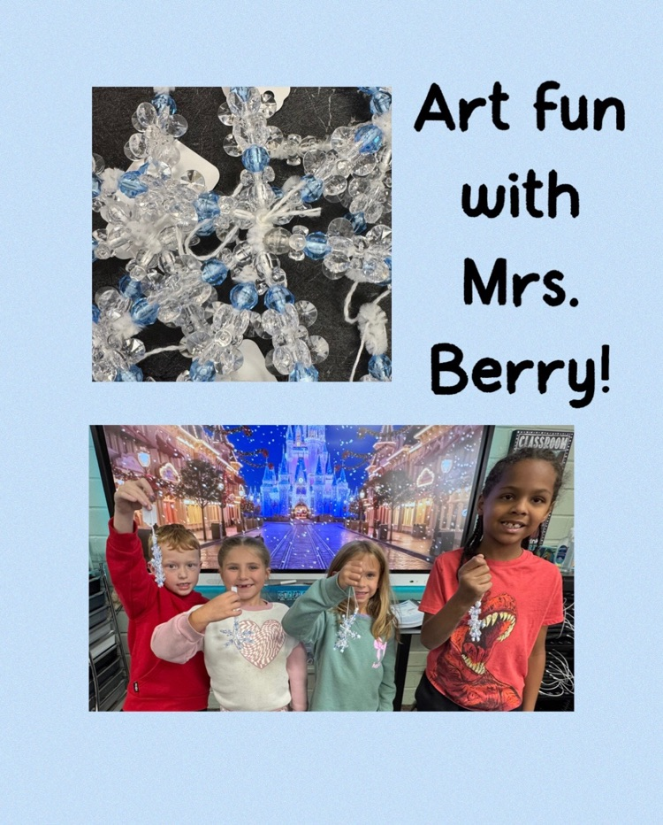 First graders have been making snowflake ornaments in Mrs. Berry’s Art class. Look how beautiful they turned out! ❄️