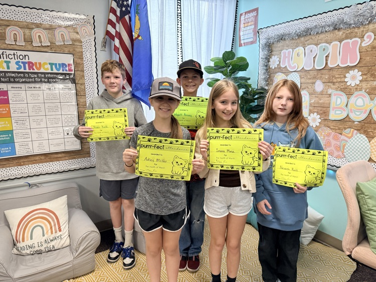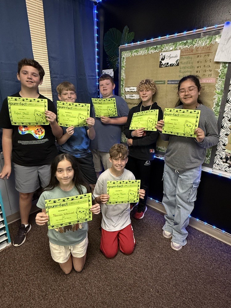 Purrrfect attendance in March for these 5th grade students 🐱