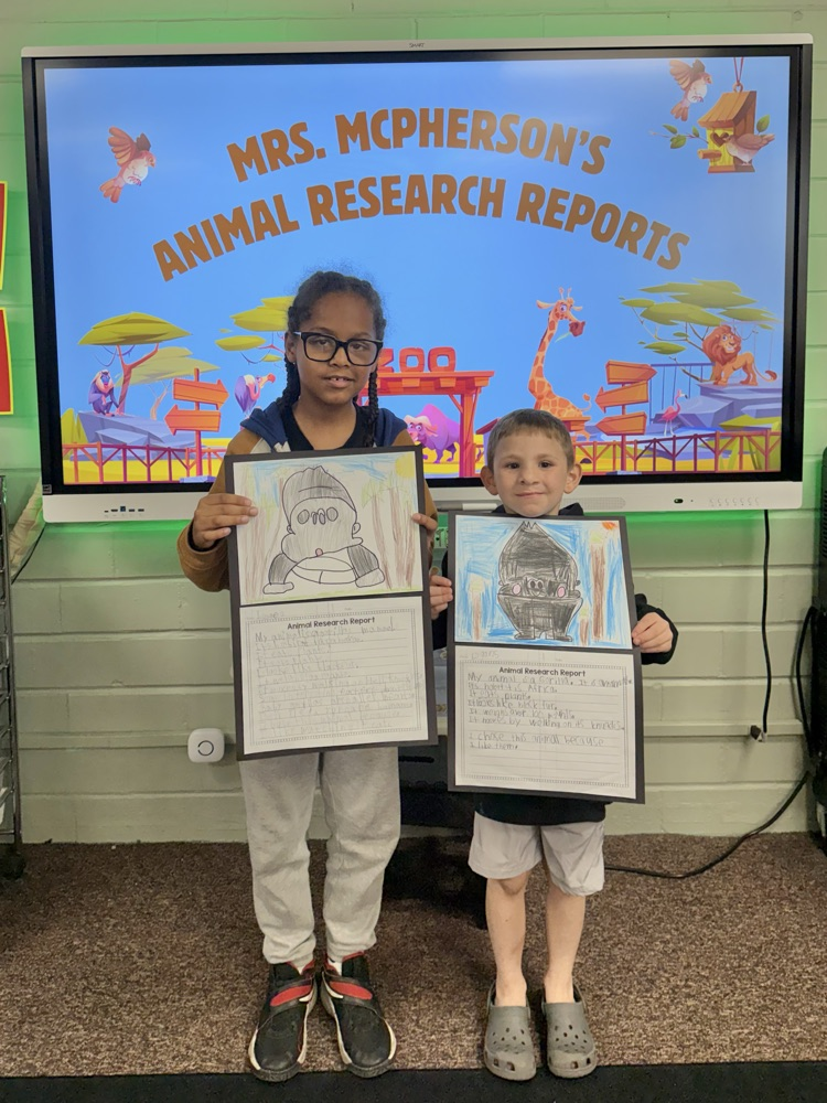 Mrs. McPherson’s class has been working so hard over the past couple of weeks on their Animal Research Reports leading up to our zoo field trip! 🐾🦁