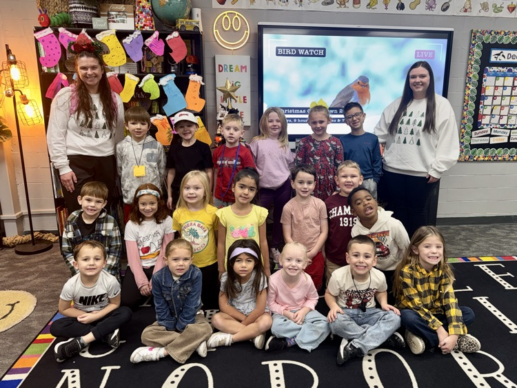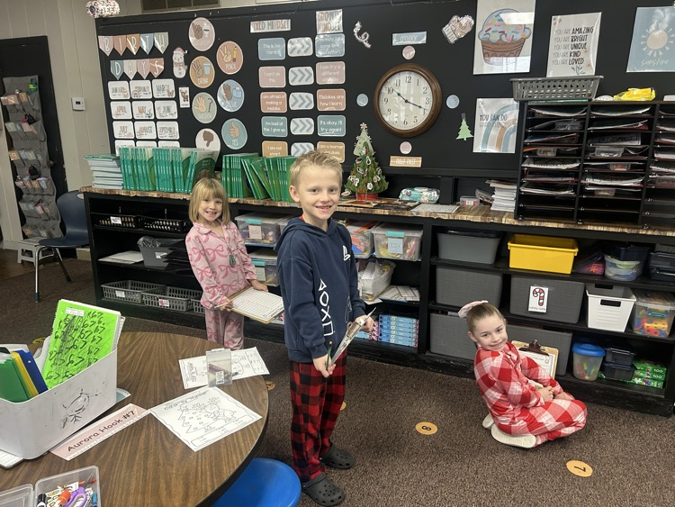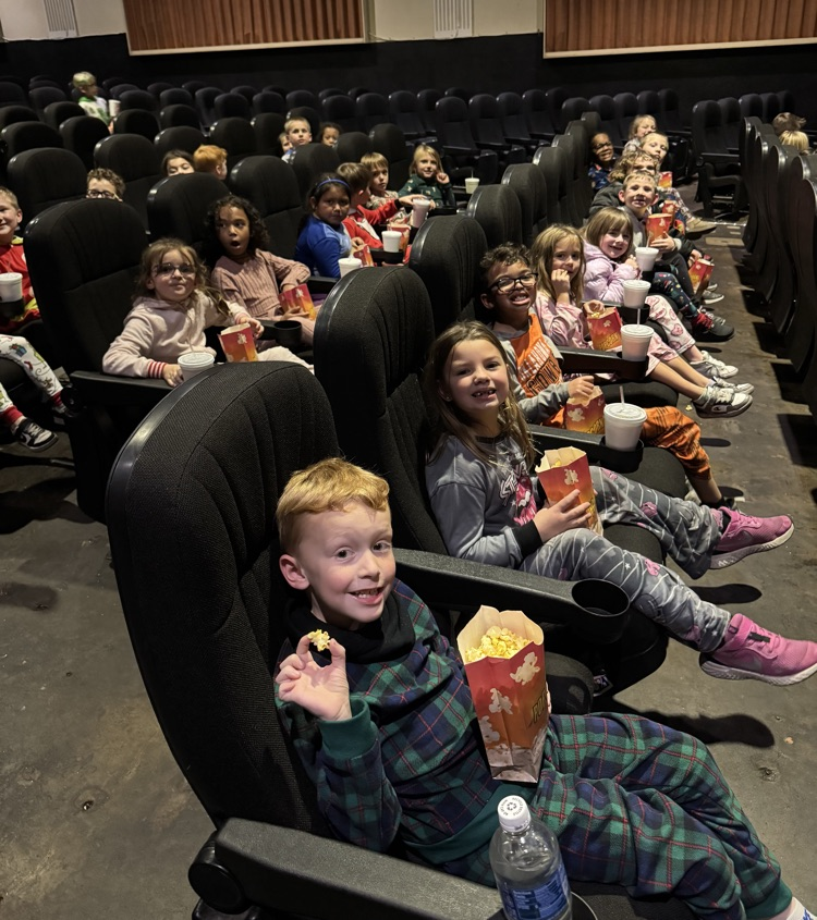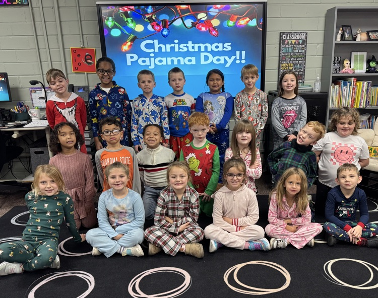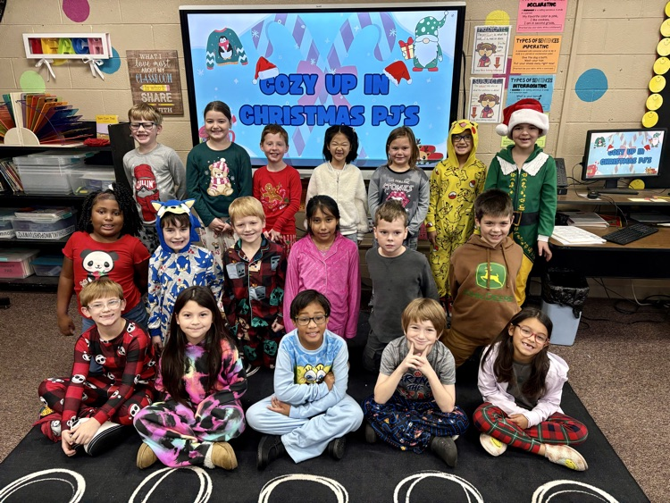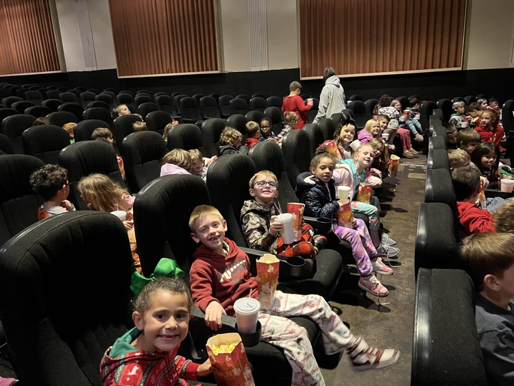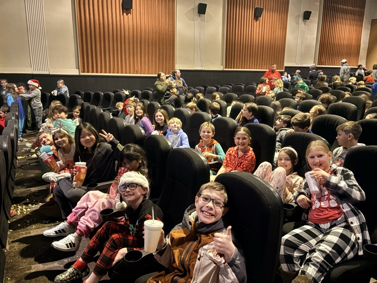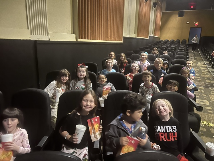 Mrs. McPherson’s class is cozy in their Christmas pajamas and ready for the movie trip this afternoon! 🎄🎬✨