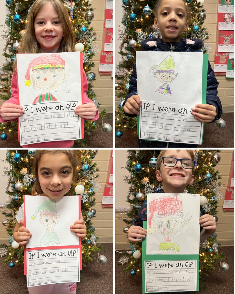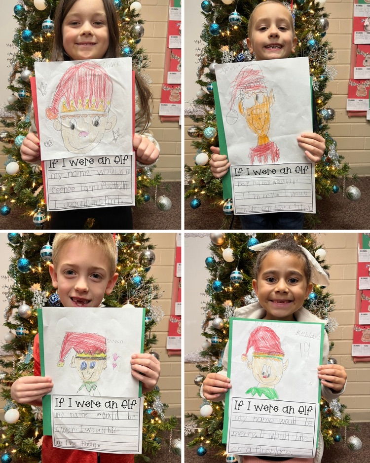Miss Ramirez’s class wrote about what they would do if they were elves to match their great drawings! 💚❤️