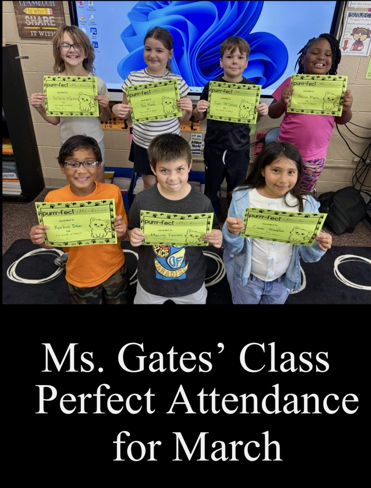 Way to go! Ms. Gates’ Class Perfect Attendance for March.