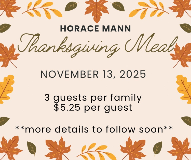 We invite you to join us for our Annual Thanksgiving Meal. Each family may bring up to three guests, and the cost is $5.25 per guest.