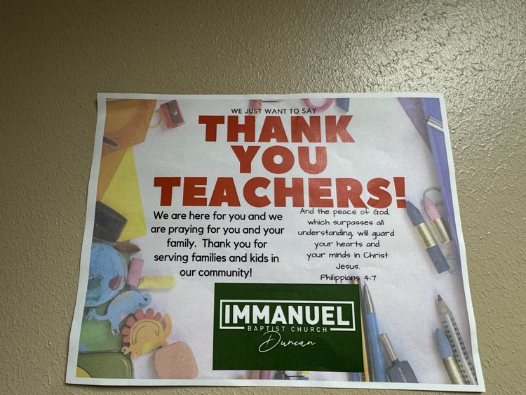 Thank you to the Duncan Public Schools Foundation for providing a meal for our staff during Parent-Teacher Conferences!