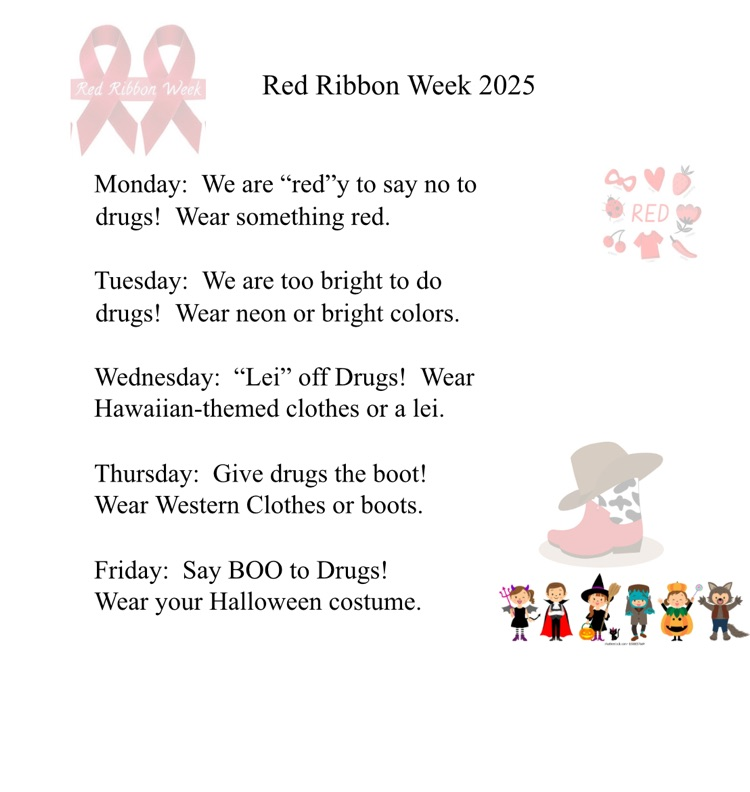 Join us next week and dress up for Red Ribbon Week!