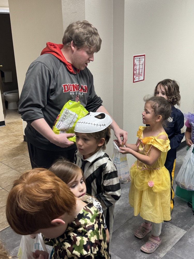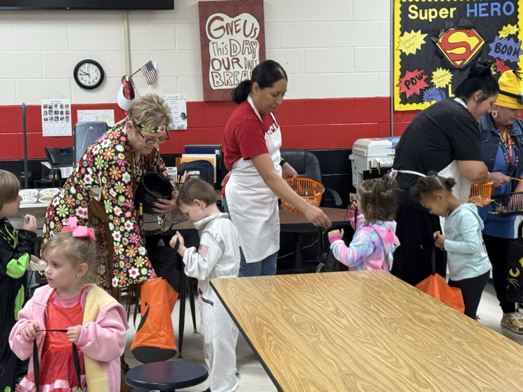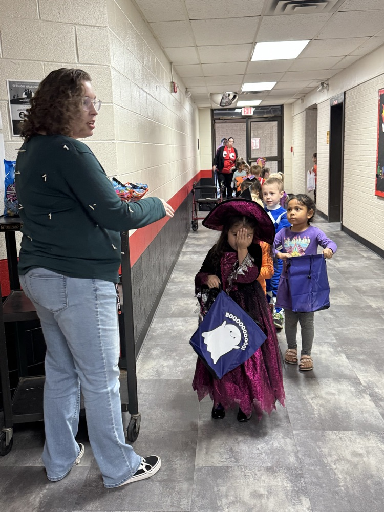 Prek and kindergarten had a great time Trick-or-Treating our hallways!